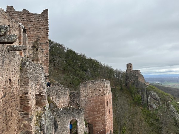 Vom Campingplatz Riquewihr haben wir heute eine kombinierte Wander- und Einkaufstour gestartet. Durch Weinberge und Obstplantagen ging es über Zellenberg nach Hunaweier und von fort nach Rappoltsweiler (Ribeauvillé). Dort sind wir auf jede der drei Burgen gestiegen (Ulrichsburg, Burg Girsberg und Burg Hohrappoltstein) und haben uns dann, entgegen unserer Gewohnheiten, in den Trubel in der Altstadt von Ribeauvillé gestürzt.